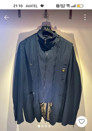 Chaqueta cortavientos tricolor talla L Le falta un botón delante pero es decorativo en la chaqueta, por lo demás está como nueva.