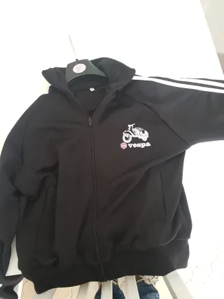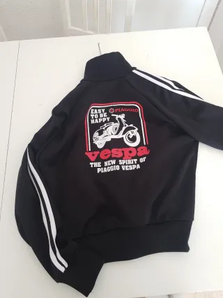 Chaqueta deportiva con diseño inspirado en Vespa. - Estampado frontal con logo y eslogan de Vespa. - Rayas blancas en las mangas. - Cuello alto.