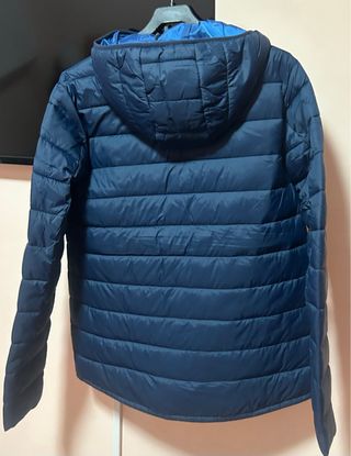 Chaqueta de plumón Jott en color azul. Talla S. En perfecto estado, prácticamente como nueva, sin roturas ni desperfectos. Es tremendamente ligera y muy muy cálida, perfecta para el frío. 90% plumón de pato. 10% pluma de pato. En la foto 178cm de altura y 68kg de peso.