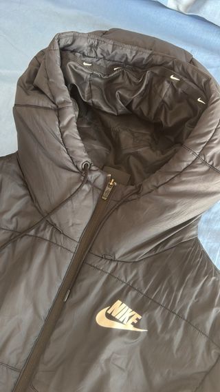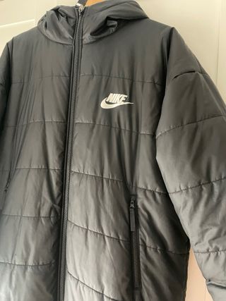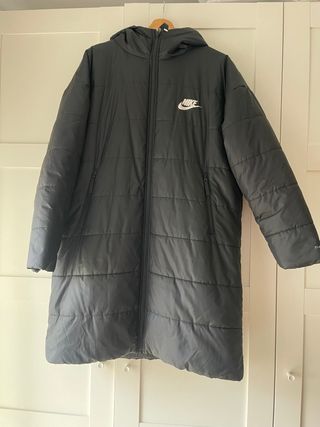 Abrigo largo acolchado de la marca Nike. Diseño moderno y funcional. - Cierre de cremallera. - Capucha integrada. - Bolsillos laterales con cremallera.