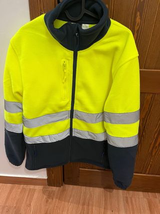 Chaqueta polar de alta visibilidad - Material polar. - Cierre de cremallera. - Dos bandas reflectantes en el torso. - Bolsillo con cremallera en el pecho. - Puños y bajo de la chaqueta en color azul oscuro