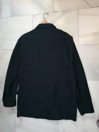 Abrigo negro con capucha, ideal para el frío y vestir. esta sin Usar tenia enganchon tara atras que esta cosida sin que se aprecie. de hay su precio - Diseño con múltiples bolsillos. - Cierre de cremallera. - Puños ajustables.
