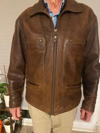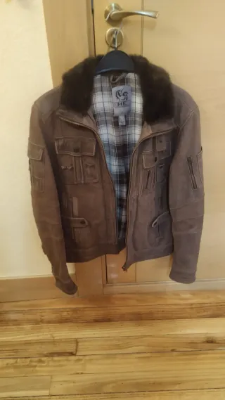 Chaqueta de cuero. - Cierre de cremallera frontal. - Bolsillos con cremallera. - Puños y bajo elásticos. - 100% piel ovina - Muy poco uso.
