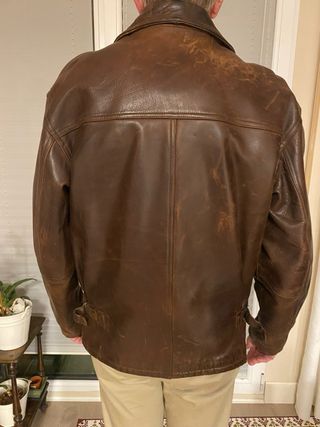 Cazadora de piel para hombre de estilo vintage. - Diseño clásico. - Cierre de botón. - Cuello camisero. - Puños y cintura elásticos.