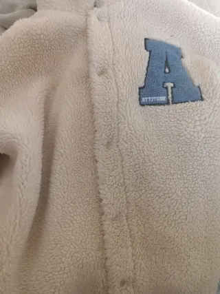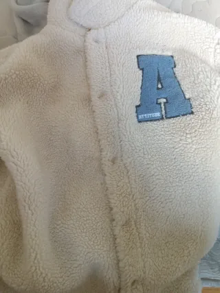 Chaqueta de pelo sintético con un diseño moderno y llamativo. - Material suave y cálido. - Detalle de letra A bordada. - Cierre de botones.