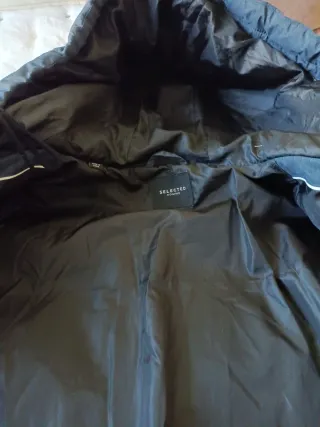 Abrigo de invierno con un diseño moderno y cálido. - Capucha con detalle de pelo sintético. - Cierre frontal con cremallera y botones. - Bolsillos frontales con solapa y cremallera lateral. - Puños y cintura elásticos. ( LE FALTA LA CREMALLERA CENTAL, ALGUN BOTÓN,Y EL BOLSILLO EXTERIOR, QUE TIENE A LA ALTURA DEL PECHO,ESTA DESCOSIDO EN UN LATERAL)