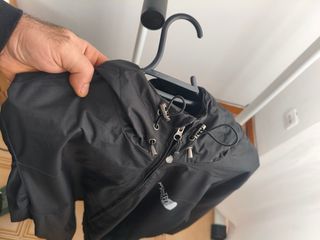 Tiene uso pero está en perfecto estado. Talla L. Color negro y en el interior rayas naranjas. Con bolsillos interiores grandes. Precio negociable