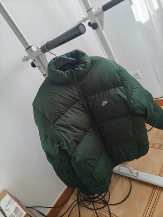 Abrigo acolchado Nike con tecnología Thermo-Pluma, muy calentito. Lo he usado poquísimo, está nuevo, me lo habré puesto 5 veces no más. No tiene manchas ni nada raro. Está impoluto. Costó 180€. Lo vendo por cambiar de estilo de vestir. - Diseño bicolor en azul y azul marino. - Cremallera frontal. - Capucha integrada. - Bolsillos laterales con cremallera.