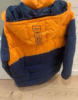 Abrigo acolchado de la marca DC Shoes con un diseño moderno y llamativo. - Combinación de colores naranja y azul marino. - Bolsillos frontales con solapa y botón. - Cierre de cremallera. - Logo de DC Shoes en el pecho.