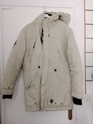 Chaqueta de invierno con capucha. - Cierre de cremallera frontal. - Cordones ajustables en la capucha. - Bolsillos laterales. - Puños y bajo elásticos.