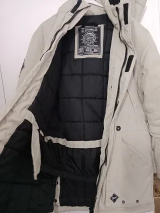 Chaqueta de invierno de la marca Boston, talla M. Es de color verde oliva y tiene capucha. Está a estrenar. - Forro interior de borreguillo. - Bolsillos funcionales. - Cierre de cremallera.