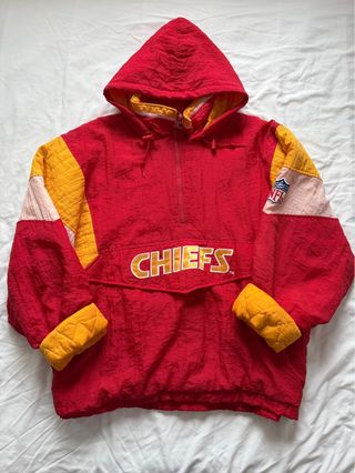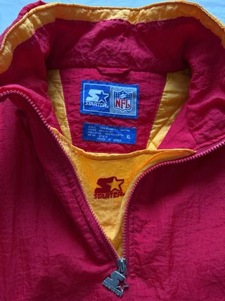 Chaqueta tipo anorak de Starter con el logo de los Chiefs. - Diseño pullover. - Combinación de colores rojo y amarillo. - Capucha. - Bolsillo frontal con cremallera.