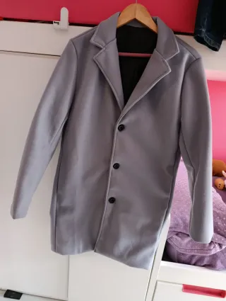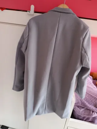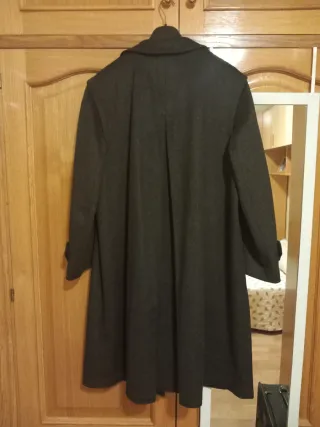 Abrigo largo de color gris, ideal para añadir un toque elegante a tu vestuario. - Diseño de solapa clásica. - Cierre de botones. - Forro interior negro. -Totalme nuevo -Muy elegante