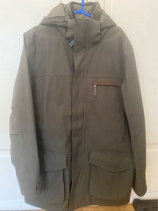 Abrigo de la marca Aigle en color verde. Diseño moderno y funcional. Talla L Perfecto para Campo. Prácticamente sin Estrenar. - Capucha integrada. - Bolsillos frontales. - Cierre de cremallera