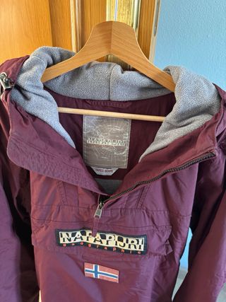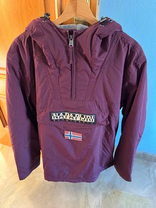 Abrigo tipo anorak de la marca Napapijri. - Diseño con capucha. - Bolsillo frontal. - Parche de la marca y bandera en el frontal. En muy buen estado, vendo por quedarse pequeño, cualquier duda de medidas o lo que sea no duden en escribirme