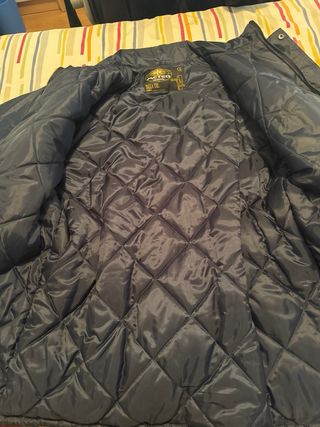 Chaqueta de invierno con un diseño acolchado. - Material sintético. - Cierre de cremallera frontal. Tiene por dentro la talla borrada, pero es una L.