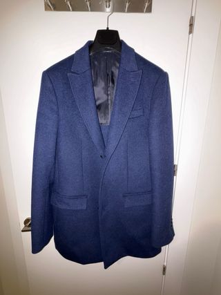 Elegante abrigo de color azul . - Diseño clásico con solapas. - Cierre de botones. - Bolsillos frontales.