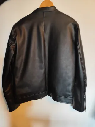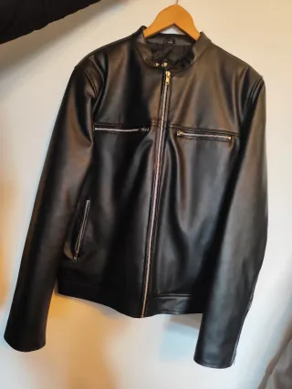 Cazadora de piel para hombre marca Salsa talla L - Diseño moderno y elegante. - Cierre de cremallera frontal. - Bolsillos con cremallera. - Cuello redondo con botón. - Detalles acolchados en hombros y mangas. - La cazadora tiene poco uso aunque la piel está un poco gastada por algunas zonas, según puede apreciarse en fotografías Más cositas en mi perfil