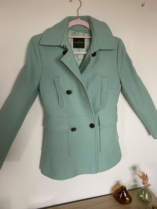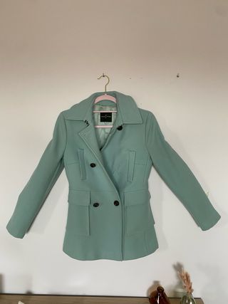 Elegante chaqueta de la marca Roberto Verino en un bonito color verde agua. - Diseño de doble botonadura. - Bolsillos frontales con solapa. - Cuello clásico.