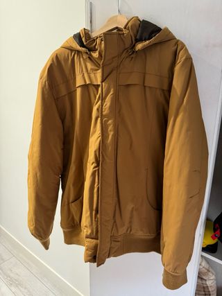 Abrigo acolchado con capucha. - Cierre de cremallera frontal. - Dos bolsillos laterales con cremallera. - Perfecto estado. Muy calentito