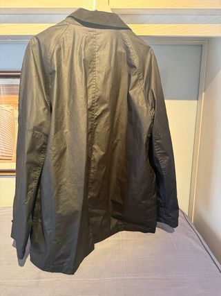 Abrigo largo de Emporio Armani Jeans. - Diseño elegante y moderno. - Cierre frontal con cremallera. - Cuello alto. - Bolsillos laterales. Estado: En buen estado general. Como detalle, tiene un pequeño enganchón en la zona del pecho, pero es prácticamente imperceptible a simple vista debido al brillo y color de la tela (ver fotos). Composición: 100% Poliéster (tejido técnico resistente). Talla: 46 (IT). Por favor, revisa las medidas exactas. Medidas (tomadas en plano): Hombros: 46 cm Axila a axila: 52 cm Largo total: 92 cm 182