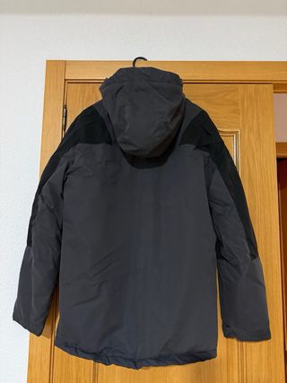 Abrigo de la marca Trangoworld en color negro. Talla XL. Se separa el exterior (membrana impermeable) de la parte del forro polar, es desmontable, por lo que se pueden usar ambas prendas por separado. Está usado pero completamente funcional. - Capucha ajustable. - Cierre de cremallera y botones. - Bolsillos laterales.