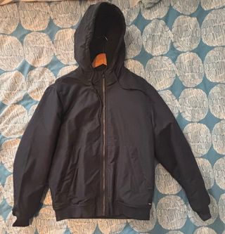 Abrigo azul marino con capucha, perfecto para el frío. Muy cómodo y con amplios bolsillo, lo vendo porque me lo regalaron hace mucho no lo use y ahora me va pequeño. ESCUCHO OFERTAS - Cierre de cremallera. - Bolsillos laterales. - Puños y bajo elásticos.