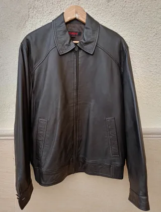 Chaqueta de hombre, marca Torras (marca especializada en diseños de piel de alta gama). Talla 52 (ver medidas en las fotos). Color marrón oscuro. Cuello camisero. Bolsillos en los laterales. Cierre delantero con cremallera. Puños abotonados. Bajo con detalles elásticos. Con forro interior. Tres bolsillos interiores, con cremallera. Pieza exclusiva, atemporal y elegante, realizada con materiales de excelente calidad. Muy poco uso, está como nueva, muy bien conservada.
