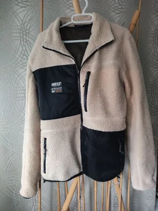 Abrigo de tejido polar con paneles en contraste. En tienda son 170 eur con 4 usos apenas - Diseño unisex. - Cierre de cremallera. - Bolsillos con cremallera.