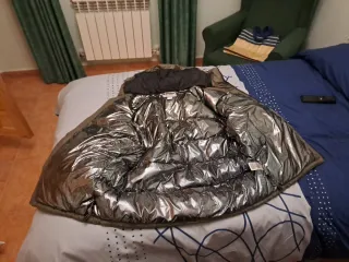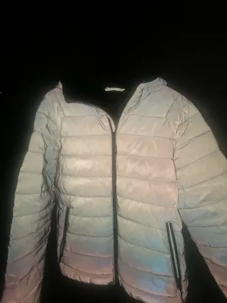 Abrigo acolchado con un diseño llamativo que refleja la luz. Me la regalaron pero no es mi talla