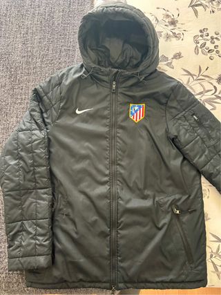 Abrigo oficial del Atlético de Madrid. - Diseño acolchado en las mangas. - Capucha ajustable. - Cremallera frontal. - Bolsillos con cremallera. - Bolsillo interior con cremallera - Belcro en las mangas para ajustar