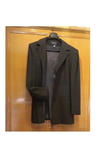 Chaqueta de traje gris oscuro de la marca Studio Classics, mide 42 cm de hombros, sisa 47 cm y largo 74 cm.