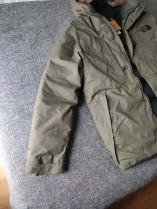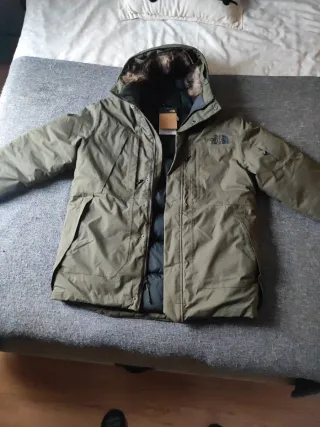 Chaqueta The North Face de color verde militar. Cuenta con capucha y detalles de pelo. - Cierre de cremallera. - Bolsillos frontales. - Logo de la marca en el pecho. -Plumas de ganso. -Abriga muchísimo.