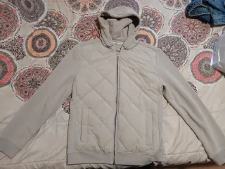 Abrigo de Cortefiel en color beige. Presenta un diseño acolchado en la parte frontal y mangas de sudadera. - Cierre de cremallera. - Bolsillos laterales. Vendo via wallapop y entrego en mano. El envio irá en una caja y relleno de papel burbuja, para que no suceda ningún imprevisto.