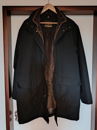 Diseño moderno y elegante con capucha y múltiples bolsillos. - Capucha ajustable. - Bolsillos frontales con solapa/iman y cremallera. - Cierre de cremallera. - Puños ajustables. Muy abrigado, impermeable y cortavientos. Tiene uso y años pero está para usar muchos años más. Costó casi 400€.