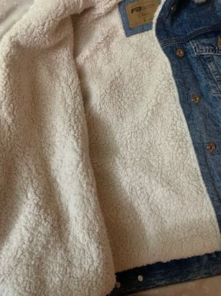 Chaqueta vaquera con forro interior de borreguillo, ideal para el frío. Sin estrenar. Es talla L pero talla como M o incluso menos. Precio poco negociable. - Diseño clásico de chaqueta vaquera. - Cuello y forro interior de borreguillo blanco. - Lavado desgastado en tono azul.