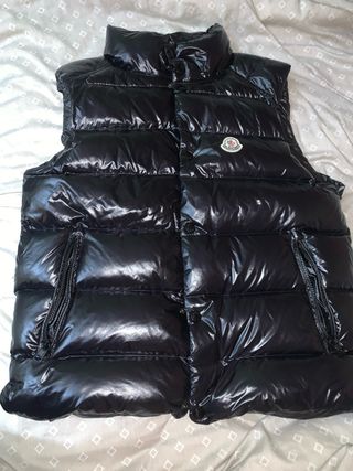 Chaleco acolchado de la marca Moncler. Color negro brillante. Usado un solo día y no puesto más debido a que se me rompió ese primer día. Presenta una pequeña quemadura como se puede apreciar en la foto 6 pero no se nota mucho y tiene arreglo, también se descosió una muy pequeña parte debajo del sobaco, pero se puede coser muy fácilmente, podría entregarla ya arreglada. Precio poco negociable.