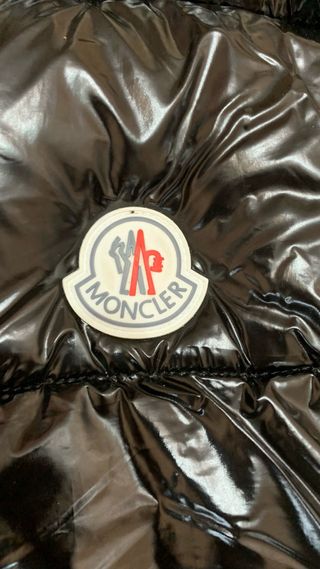 Abrigo acolchado de la marca Moncler. - Diseño brillante. - Cierre de cremallera frontal. - Bolsillos con cremallera.