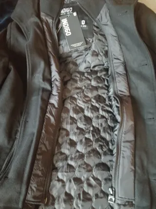 Abrigo Negro, totalmente nuevo y sin usar ninguna vez, para hombre de la marca Indicode, elegante pero también bastante casual. - Es negro pero en las fotos que hice no se apreciaba bien por eso paso foto también del modelo que salía en Internet. Ese color es el real, el q sale en mi cámara con la luz parece gris pero es negro. - Corte ajustado. Talla L pero diría q tira un poco a M en la realidad. - Diseño moderno y elegante. - Cierre frontal. - Bolsillos laterales. - Tiene bolsillo interno también