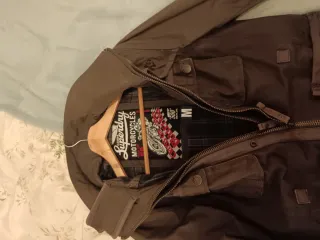 Abrigo Springfield en talla L. - Relleno de fibra. - Impermeable. - Cortavientos. - Cuatro bolsillos exteriores con cremalleras. Los bolsillos de las manos están forrados con tacto suave. - Cuello suave. - Capucha también rellena de fibra. - Muy caliente.