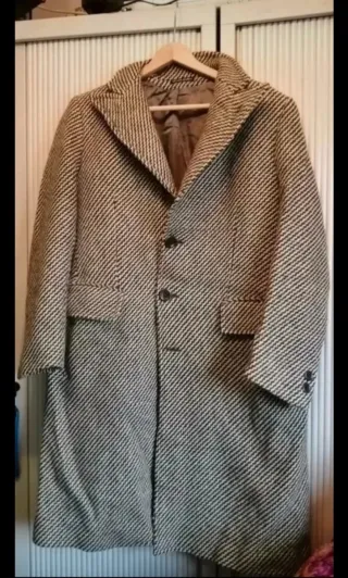 Abrigo largo con un estampado clásico. - Diseño de espiga. - Cuello solapa. - Cierre de botones. - Bolsillos frontales.elegante y un poco pesado buen abrigo talla 48cm