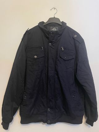 Cazadora de hombre de estilo casual. - Cuello alto. - Cierre de cremallera y botones. - Múltiples bolsillos delanteros. - Detalle acolchado en hombros.