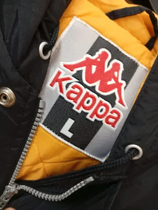 Chaqueta estilo bomber de la marca Kappa. - Color negro con detalles naranjas. - Logo de Kappa bordado en naranja en el pecho. - Puños y cintura elásticos con rayas naranjas. - Cierre de botones a presión. - Capucha integrada.