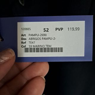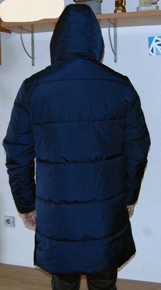 Producto original. Lleva etiquetas y adornos de la marca que lo demuestran. Interior de fibra. No es pluma. Corte ajustado y cómodo. Queda muy bonita. Medidas: Axila 44 cm cadera 45 cm Hombros 40 cm Largo Manga 63 cm Largo Total 70 cm