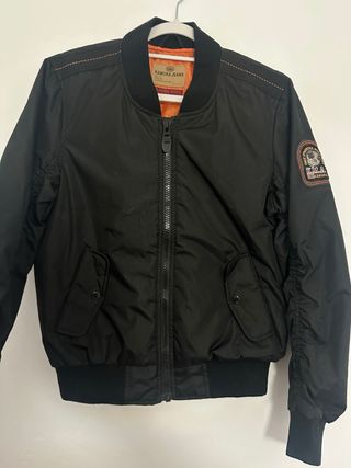 Chaqueta bomber Alpha Industries en color negro en muy buenas condiciones prácticamente nueva, conserva el parche y la cinta roja. Es de entretiempo. No tiene ninguna mancha ni descosidos nada de nada . Puesta con sudadera debajo , modo 1'76 cm y peso 74 kilos - Cierre de cremallera frontal. - Bolsillos laterales con cierre. - Detalle de parche en el pecho. - Puños y cuello elásticos.