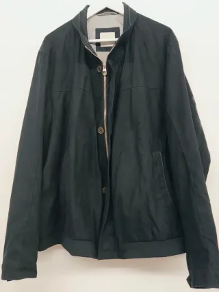 Cazadora corta para hombre. - Diseño moderno y versátil. - Cierre de cremallera frontal. - Bolsillos laterales con cremallera. - Ajustable por los lados. - Mangas de tela - En perfecto estado. Como nueva - Puños y cuello impecables