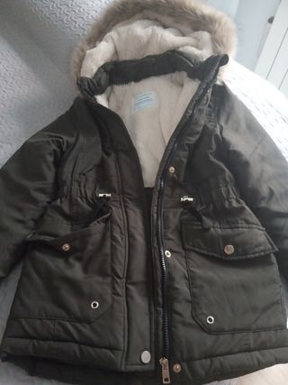 Anorak con capucha y forro extraíbles. Tiene bolsillos exteriores e interiores. Muy calentita para el invierno. Se le puede quitar el gorro y el forro para usar también en tiempo calido