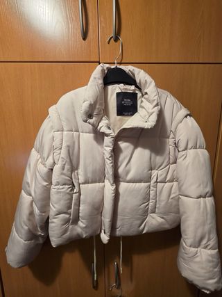 Anorak de la marca Bershka en color beige, ideal para niñas. - Talla XS. - Diseño moderno y cómodo. - Perfecto para el entretiempo.