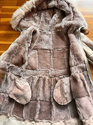 Abrigo con capucha de cuero/pelo niña 8-10 años