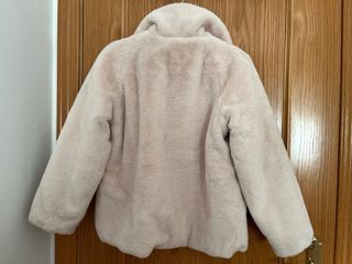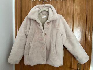 Abrigo de pelo sintético en color beige para niña. - Talla 10 años - 140 - Cierre de botones. - Bolsillos laterales. - Cuello amplio. - Muy pocos usos.